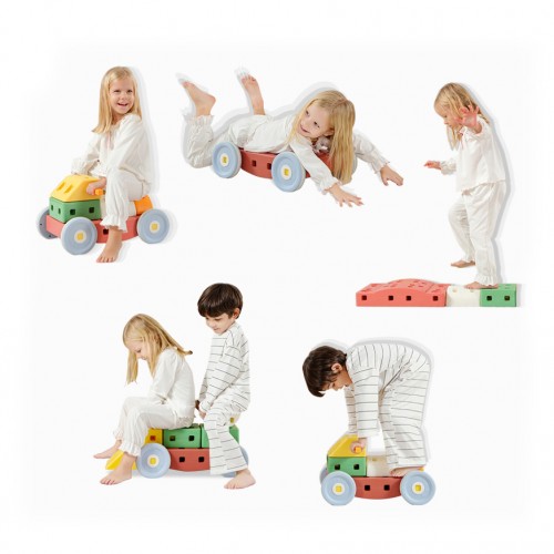 • 36 piezas de bloques, ruedas y conectores con manual para armar facilmente: Pata pata, mecedoras, autitos, torres o lo que se te ocurra.